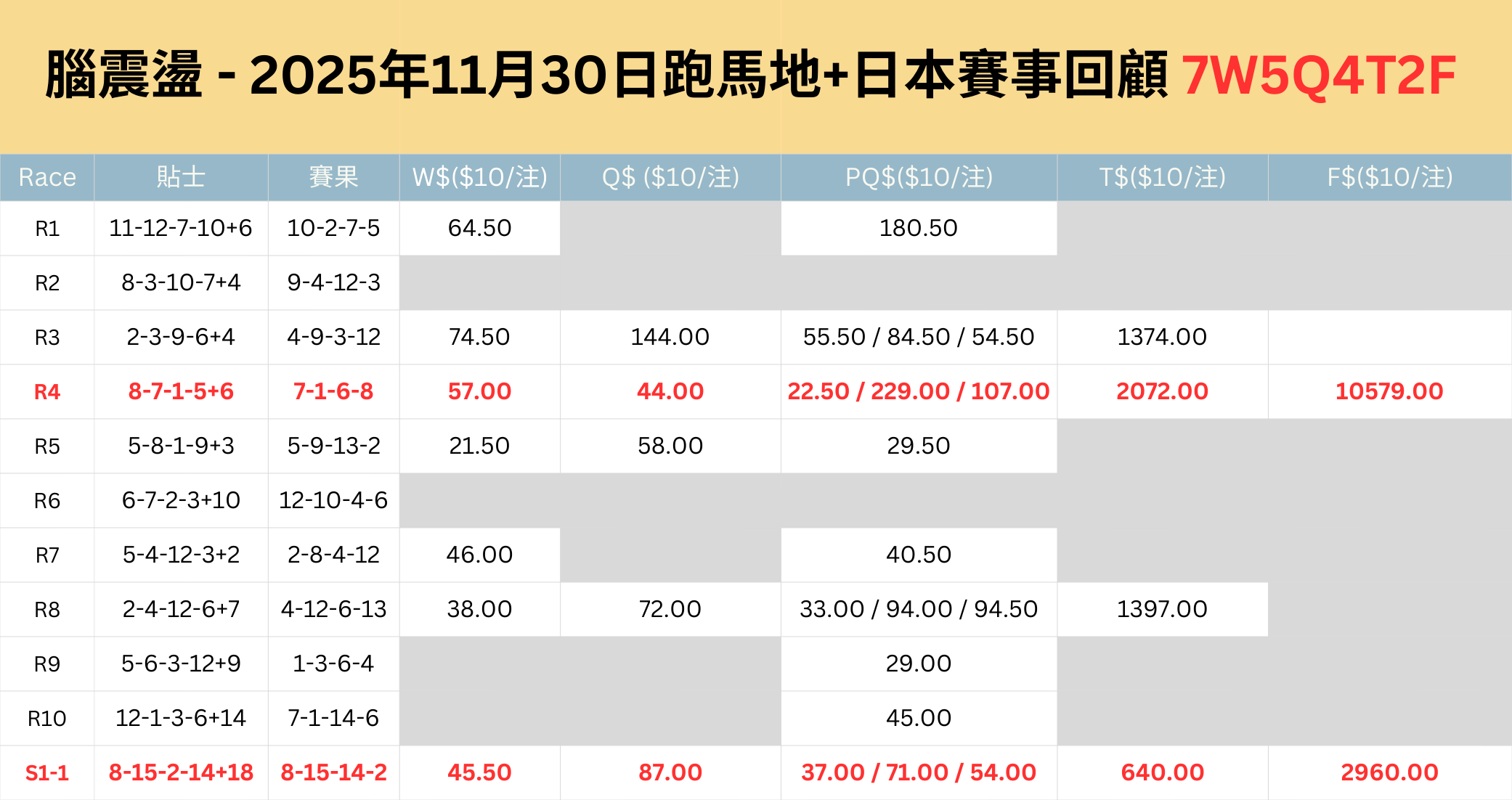 【腦震盪.賽事回顧】2025年11月30日跑馬地+日本賽事回顧 7W5Q4T2F